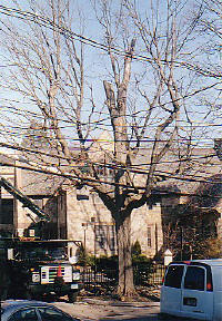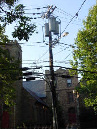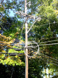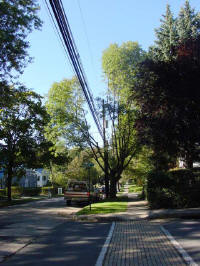 There has been a proliferation of unsightly overhead utility wires in the Mercer Hill Historic District in recent years. A significant percentage of these overhead wires are simply passing through the neighborhood, servicing the growing business and commercial interests in the areas around Princeton. These cables are an eyesore, marring the beauty of this historic neighborhood. They also interfere with the growth and care of existing trees and limit the ability to plant new trees. In one case, a mature tree was toppled onto the roof of a neighborhood home when it was hit by the bucket of an out-of-state cable company's truck. The Mercer Hill Historic District Association has worked with the Princeton Shade Tree Commission to seek a directive from the Princeton Borough Council that, whenever roads are reconstructed anywhere in the Borough, an analysis be made of the cable problem, with options and cost projections given for burying the cables. On October 9, 2001 the MHHDA made a presentation to the Princeton Borough Council, Burying Overhead Wires: A Request for Action, to support the burial of these utility wires as streets are reconstructed throughout the Borough. Click on the title above to view this presentation. Then click on images to advance from slide to slide.